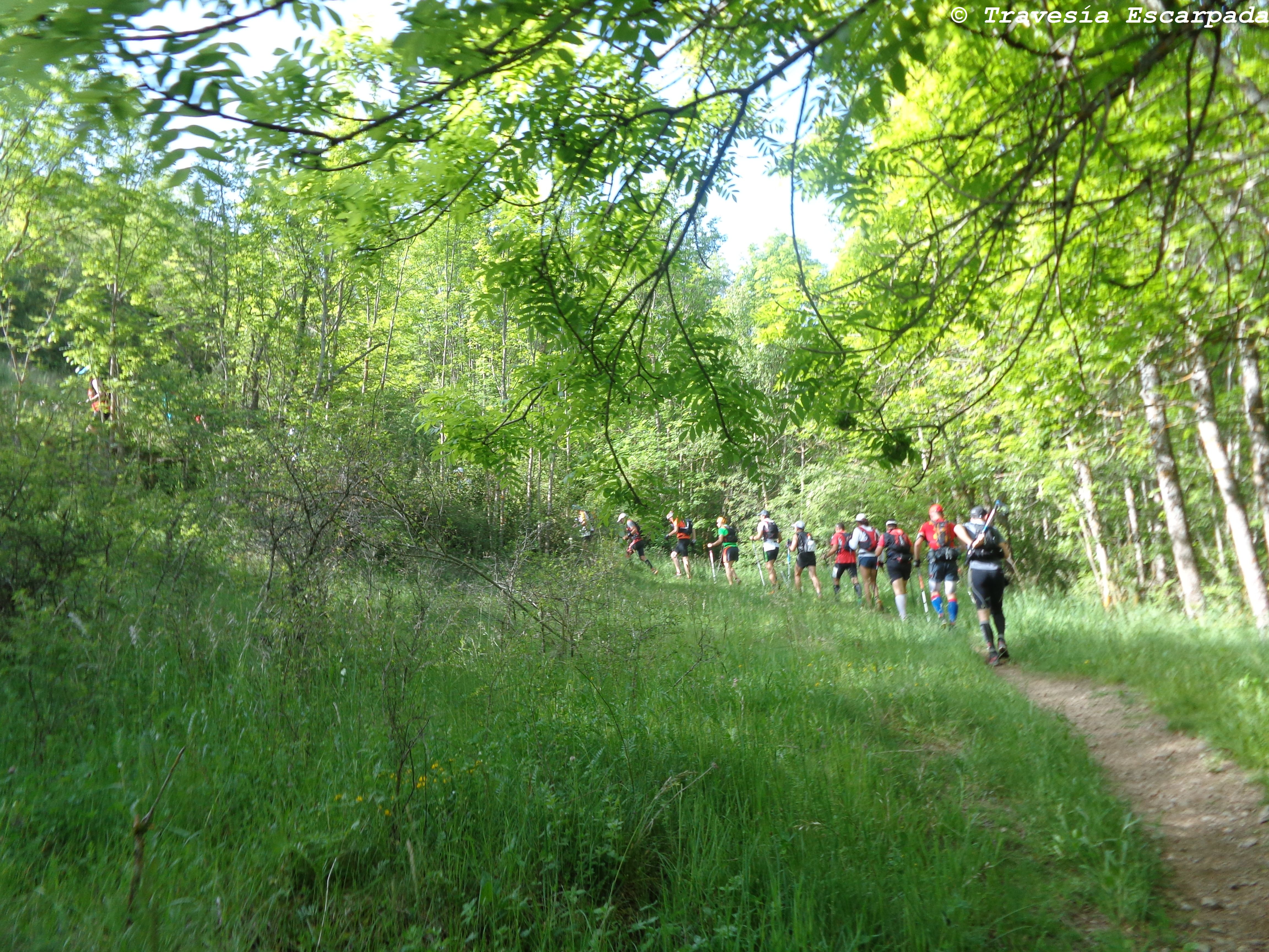 Un descenso con gran pendiente, entre piedras sueltas y mucha ramaje. Cuidando las articulaciones.