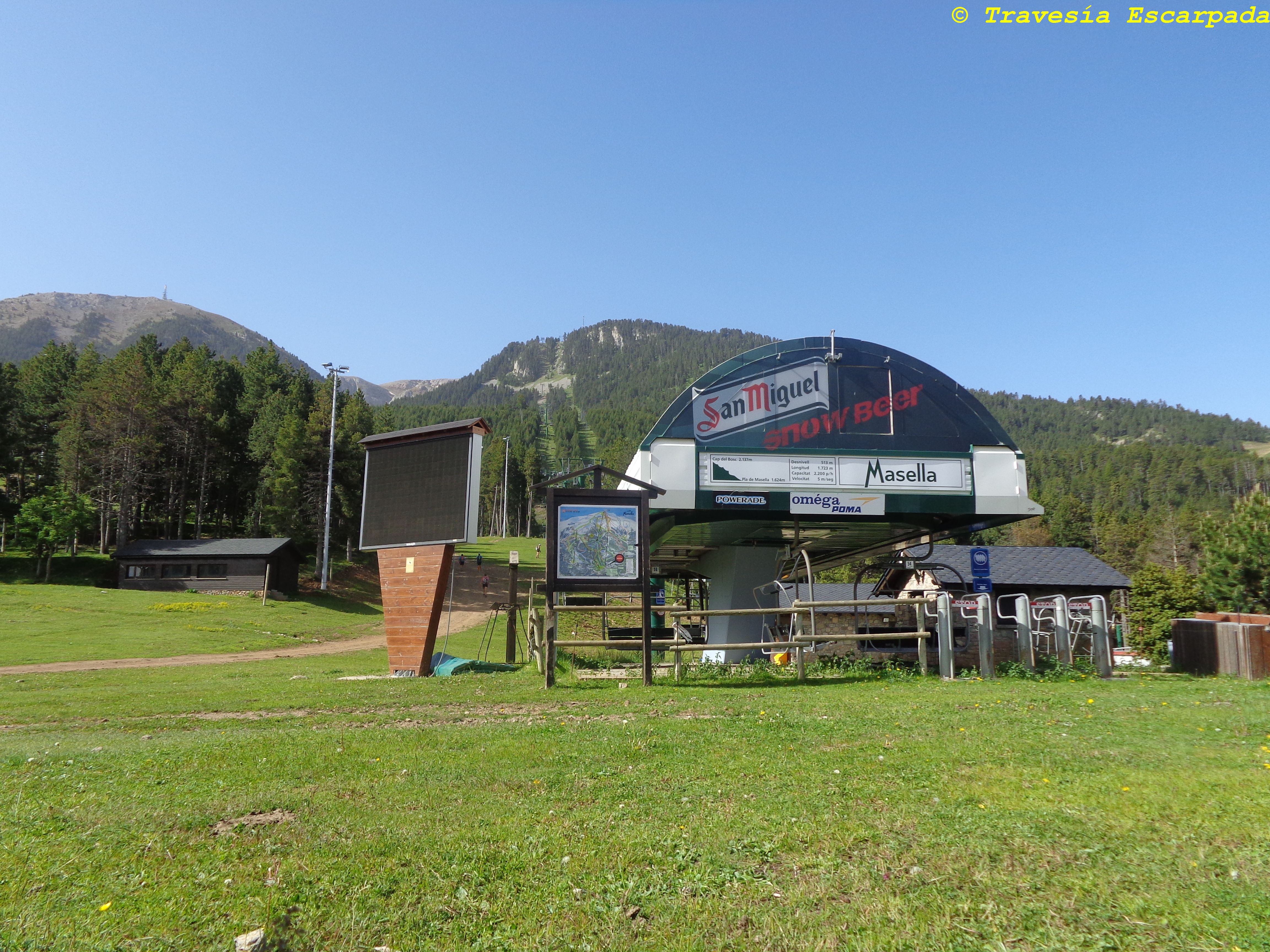 Desde el pueblo de ALP en continuo ascenso a la estación de SKY de La Masella y una vez allí, por las pistas negras hasta la cota 2000… No han pasado 7 kilómetros y del tirón 1000m desnivel positivo… Quedan sólo 80km de carrera…